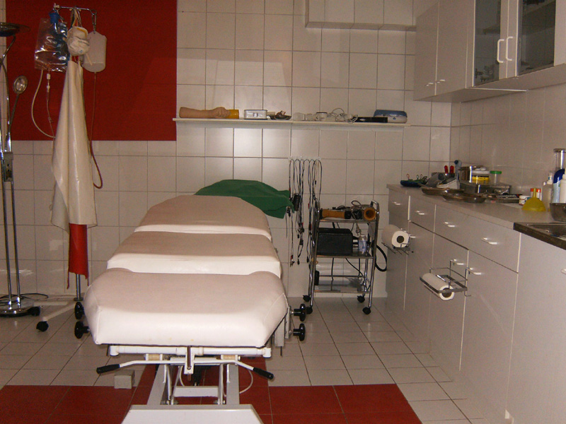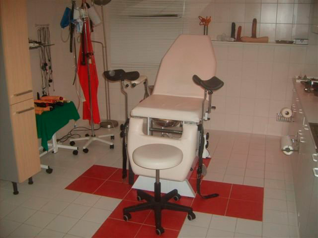 Zwei Klinikräume mit gynäkologischen Stühlen, Krankenbett, Untersuchungsliege und vollständigem medizinischen Equipment runden neben dem Schulzimmer, ein Ruheraum und der Elektrostuhl und die Venus 2000 die ausgewogene Ausstattung und Einrichtung des Studios ab.