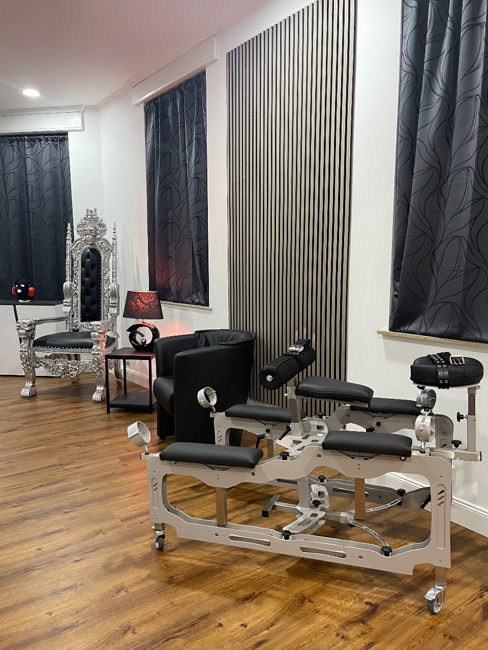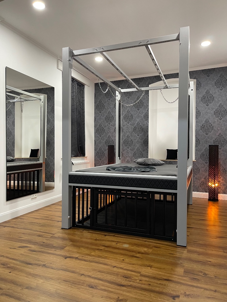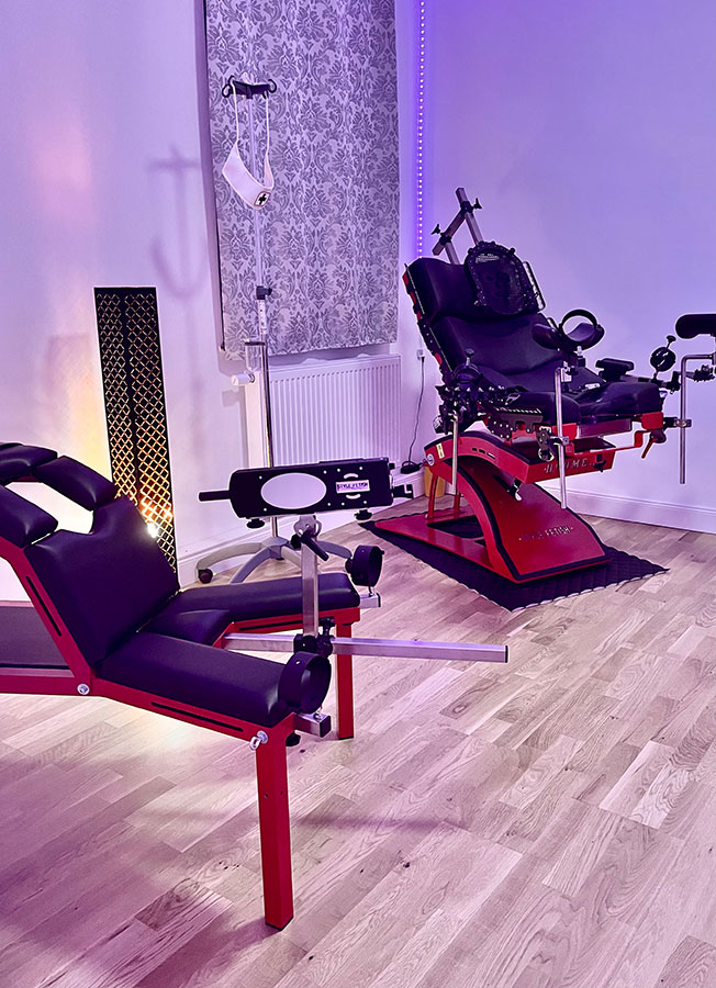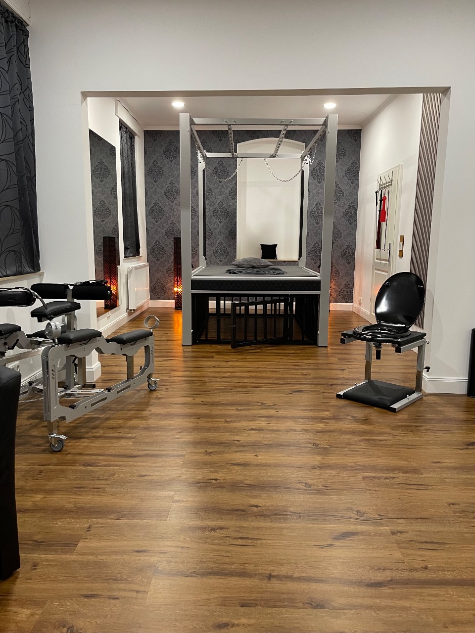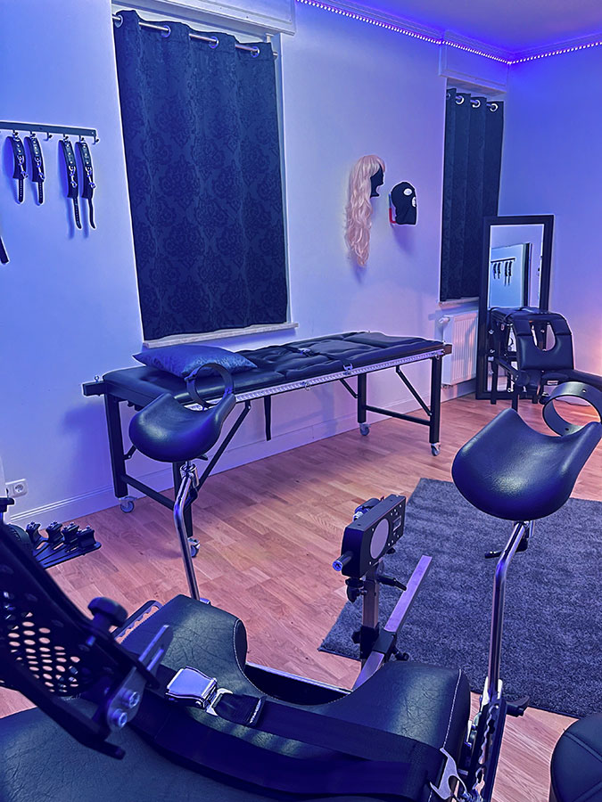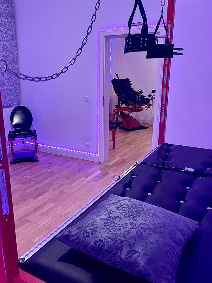 Hinter den Mauern eines im 19. Jahrhundert erbauten Gebäudes befinden sich auf zwei Etagen insgesamt vier Themenzimmer mit hochwertig ausgestattetem BDSM-Mobiliar.