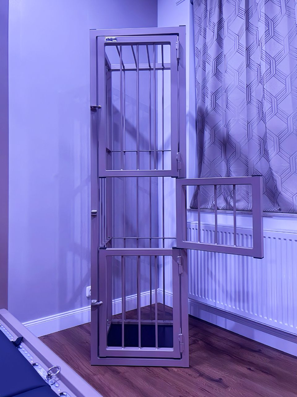 - Behandlungsliege mit Stahlhimmel und integriertem Käfig
