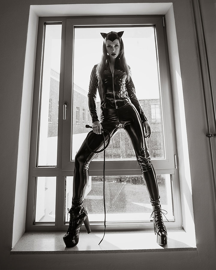 Selbstverständlich gilt dabei immer, dass Deine Sicherheit an erster Stelle steht. Außerdem bin ich eine bekennende und leidenschaftliche Latex-, Lack- und Lederfetischistin. Dabei liebe ich sowohl die optischen, als auch die haptischen Eigenschaften dieser wunderbaren Materialien.